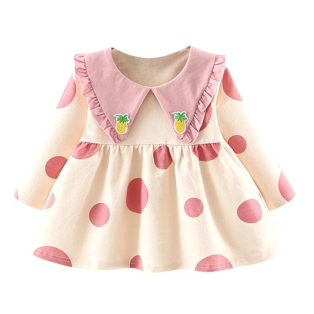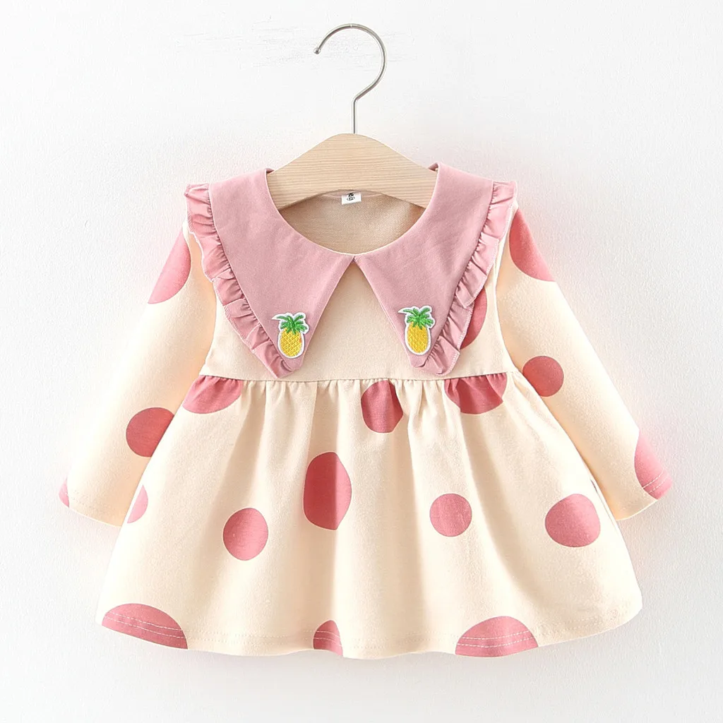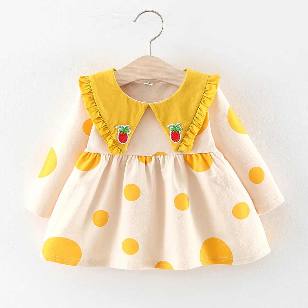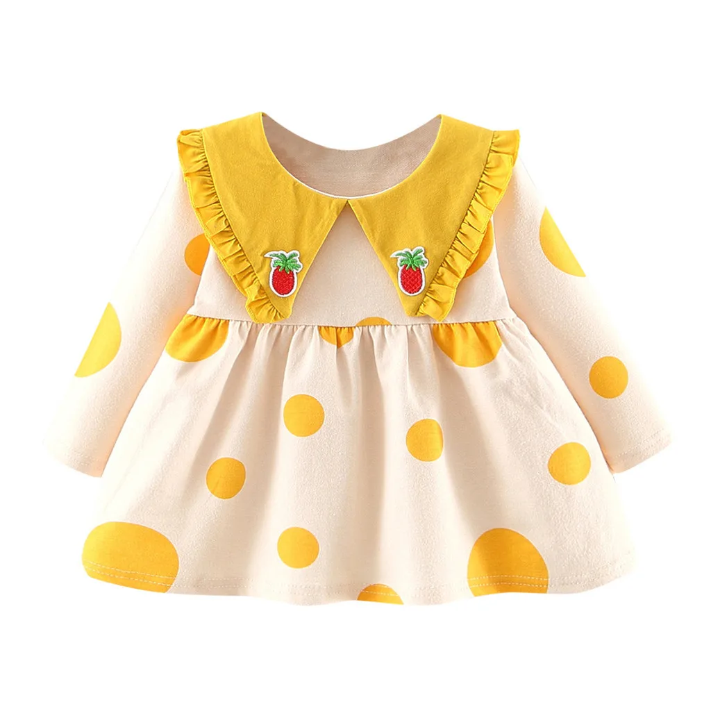 Новое платье для девочек в Корейском стиле платье с длинными рукавами и кукольным воротником, оборками и рисунком ананаса маленькая свежая одежда 50 *