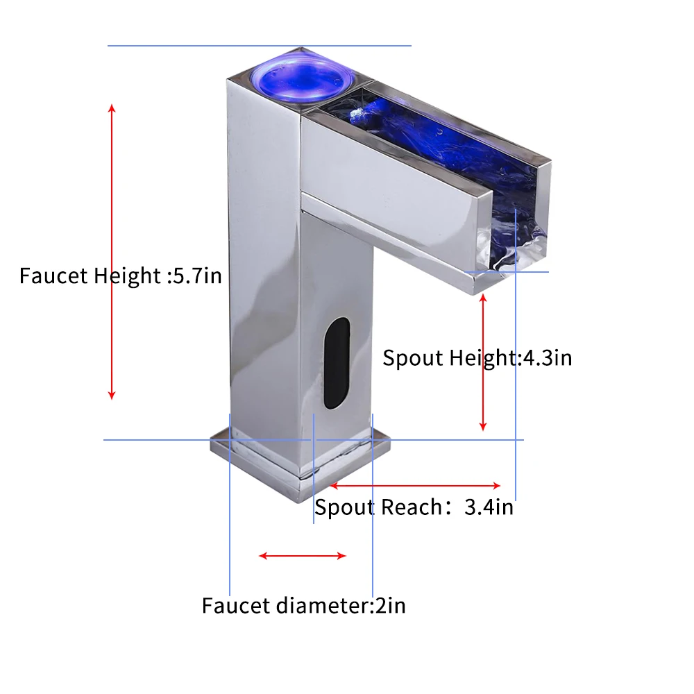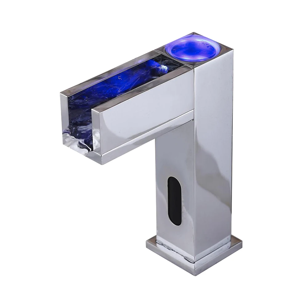 Автоматический кран для раковины ванной комнаты с 3-цветный светодиодный, ясно показывает температуру воды во избежание ожогов. Вы можете регулировать температуру воды с помощью температурного миксера в соответствии с вашими предпочтениями, сахаром и устойчивыми к потускнению хромированными поверхностями, которые могут сохранять долговечность, а также легко протирать при ежедневном использовании.