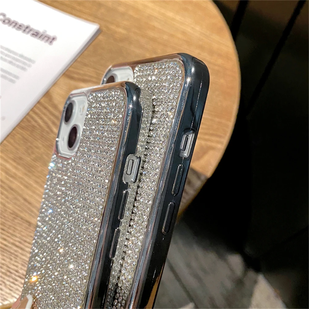 Блестящий серебристый блестящий чехол для iPhone 13 Pro Max 12 11 XR X XS Mini 6S 7 8 Plus SE со стразами и бриллиантами, мягкий силиконовый чехол