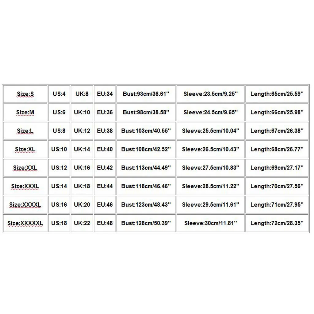 | Размеры: XXXXXL | Свяжитесь с нами: 18 | Великобритания: 22 | ЕС: 48 | Бюст: 128 см/50,39 дюйма | Рукав: 30 см/11,81 дюйма | Длина: 72 см/28,35 дюйма |