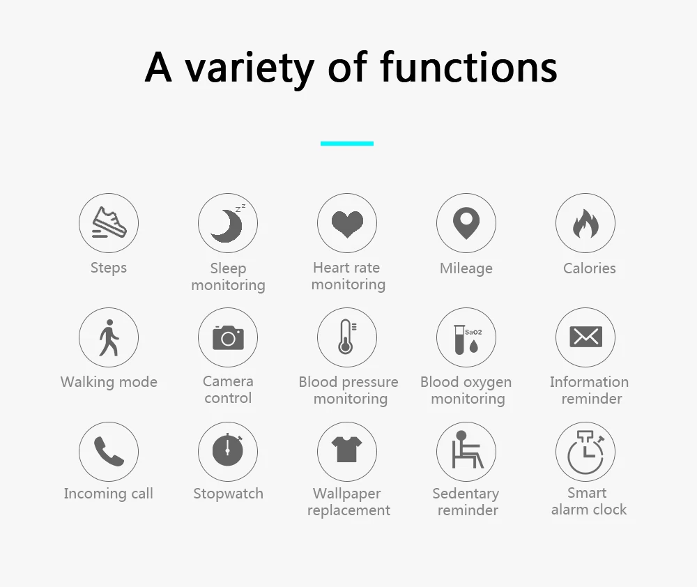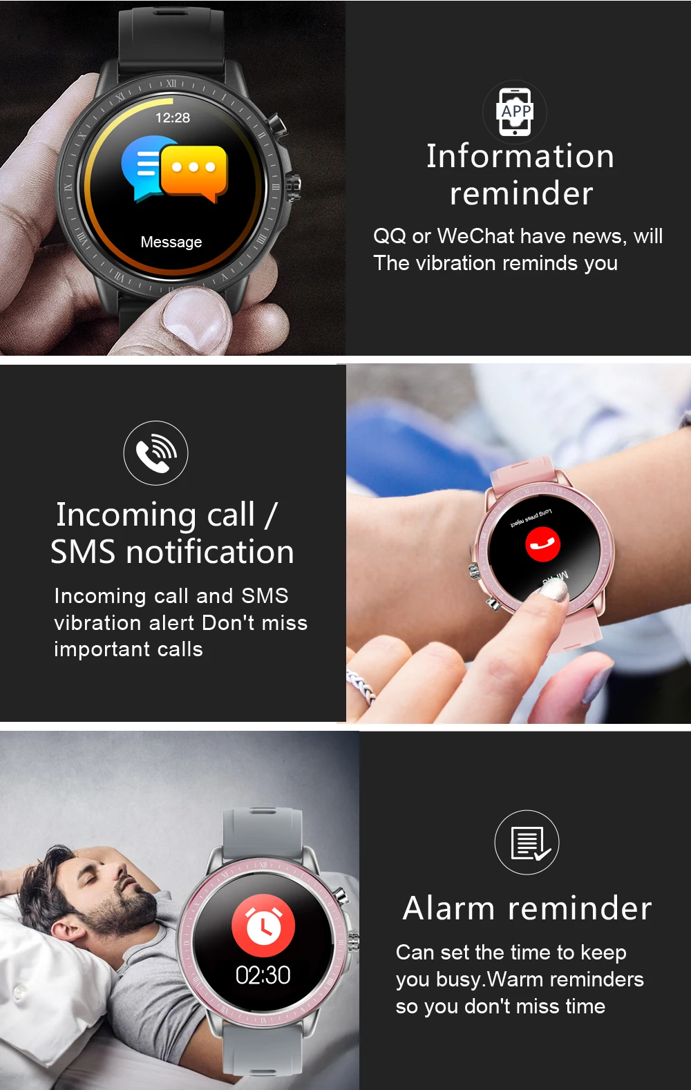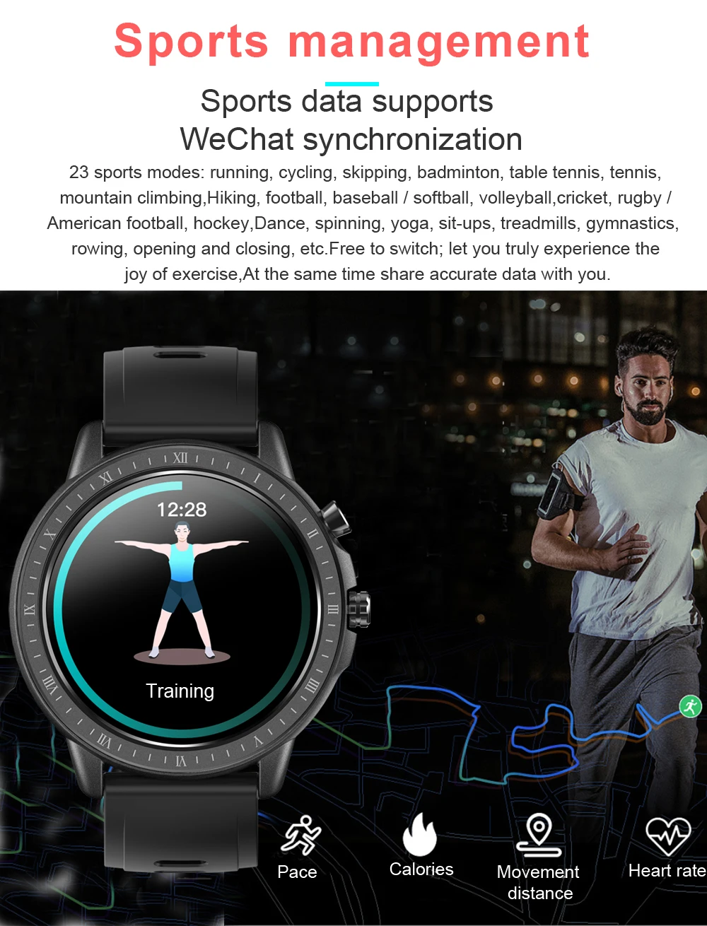 * 1,3 полный круг и полный сенсорный экран, 240*240 пикселей * BT 5,0, более стабильный * динамический пульс в реальном времени * напоминание о звонке, функция напоминания о сообщениях * 23 спортивных режима * Водонепроницаемость IP67 * переключатель с несколькими циферблатами * умная сигнализация * Интеллектуальное управление временем яркости экрана