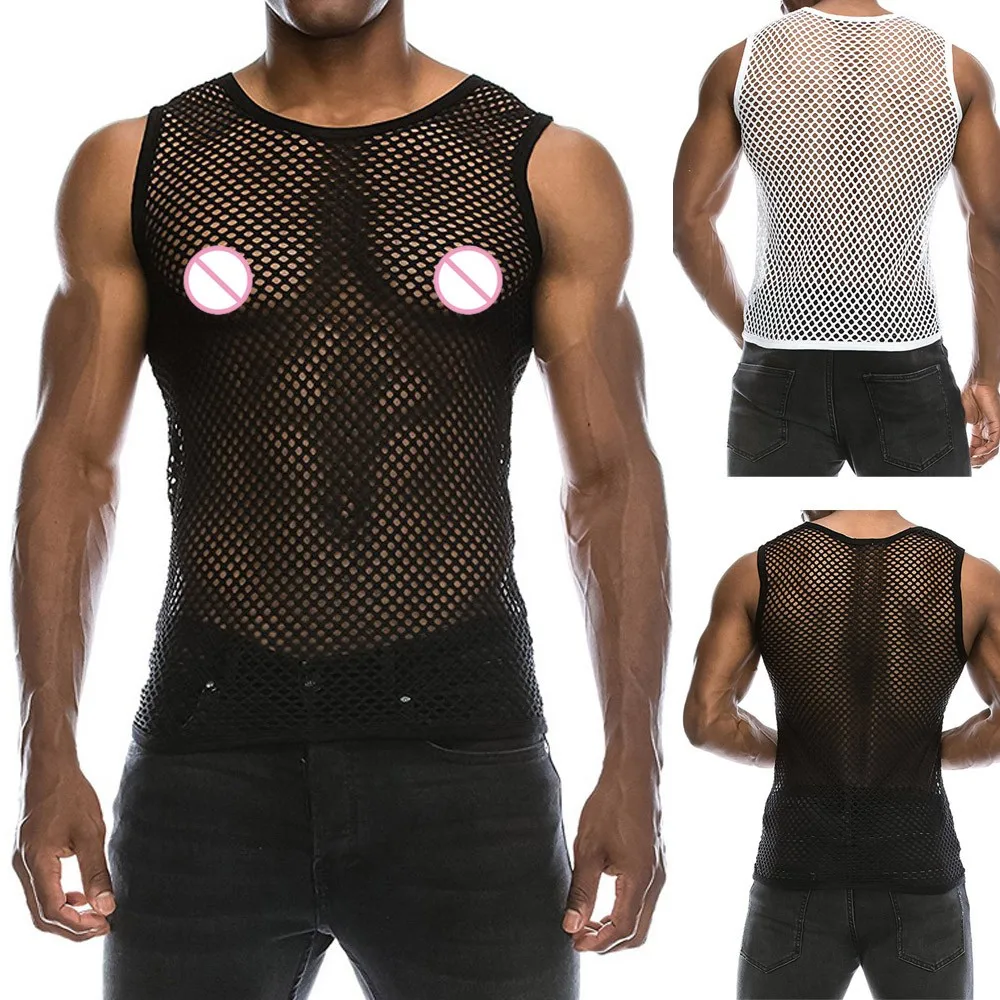 Мужской летний Повседневный пуловер на бретелях, майка, сетчатая рубашка, топ, блузка