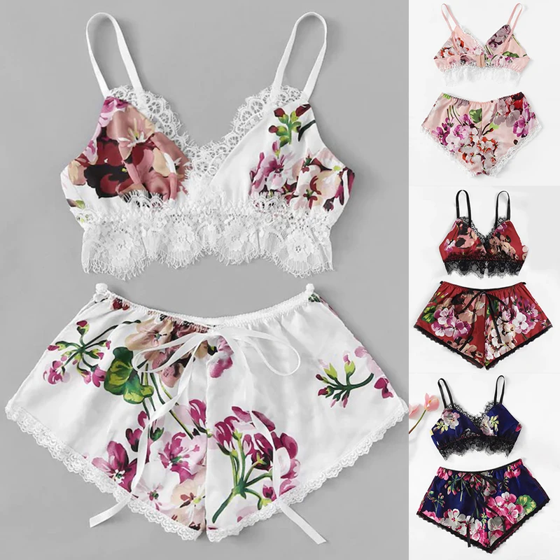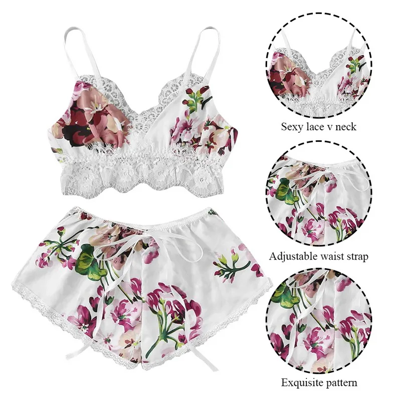 Женские пижамные комплекты, пижамы из 2 предметов, атласная кружевная сексуальная пижама без рукавов, Mujer, летние пижамы, нижнее белье, ночное белье, домашняя одежда.