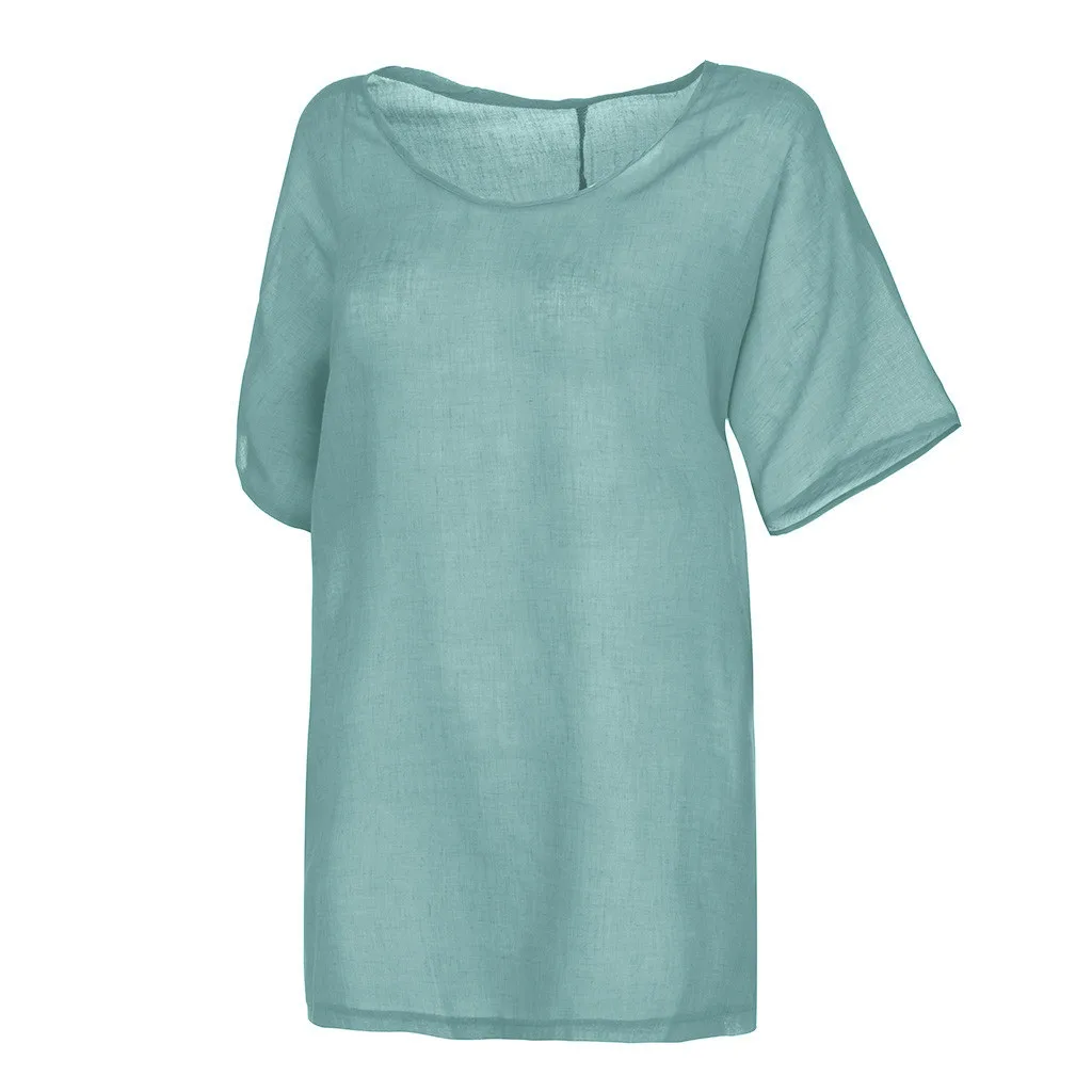 Женская Повседневная летняя Однотонная футболка с круглым вырезом и короткими рукавами размера плюс