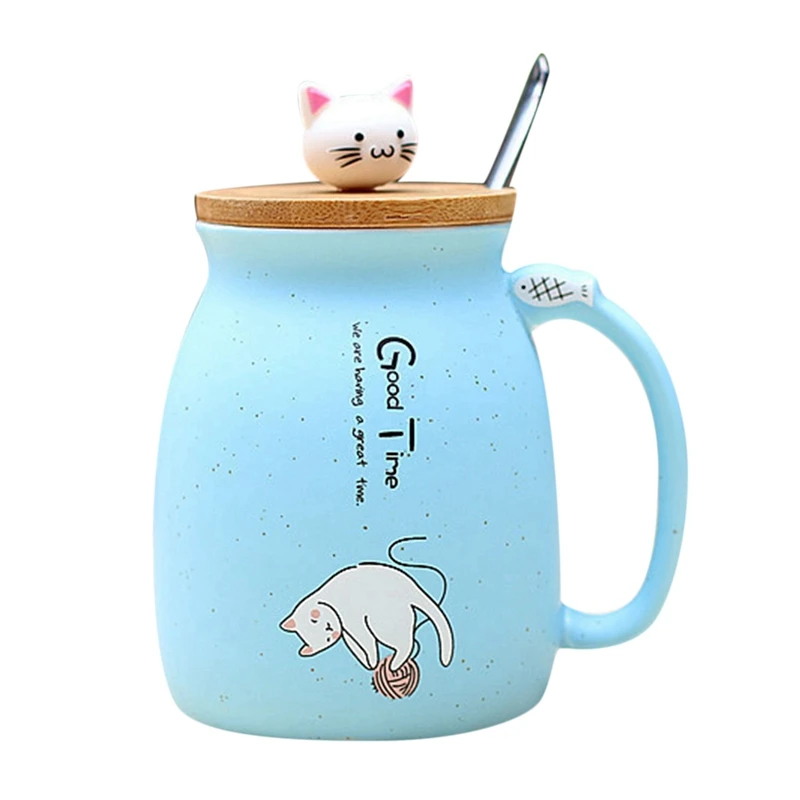 Акция! 2 шт., новинка, термостойкая чашка с изображением кунжута кота, цветная мультяшная чашка с крышкой, чашка для котенка, молочного кофе, керамическая кружка, детская чашка для офиса