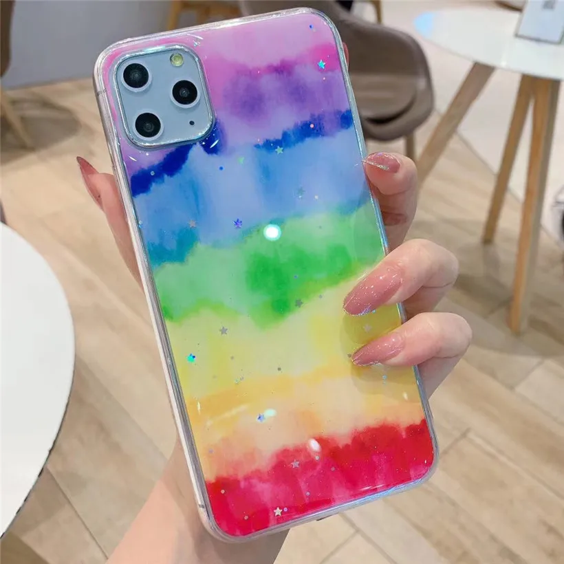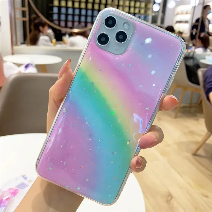 Телефон Тип:Блестящий Радужный мягкий чехол из ТПУ