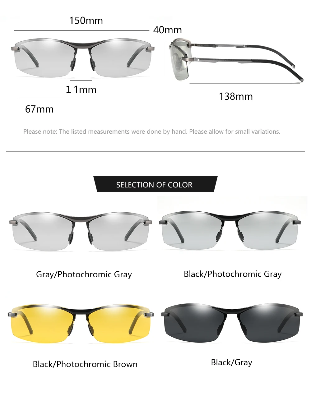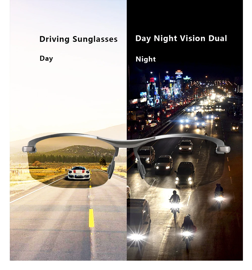 Фотохромные поляризованные линзы: Фотохромные линзы с интеллектуальным коэффициентом светочувствительности. Прозрачные и прозрачные линзы, фотохромные формы. Меняйте с УФ-интенсивностью под солнцем. Вождение в туннеле обычно, не нужно снимать.