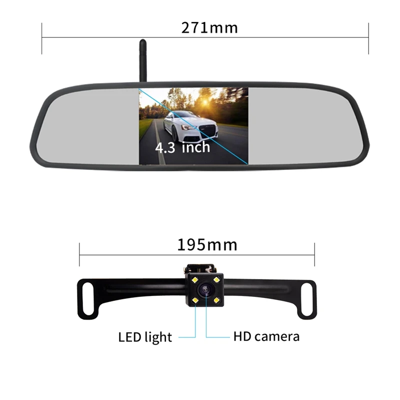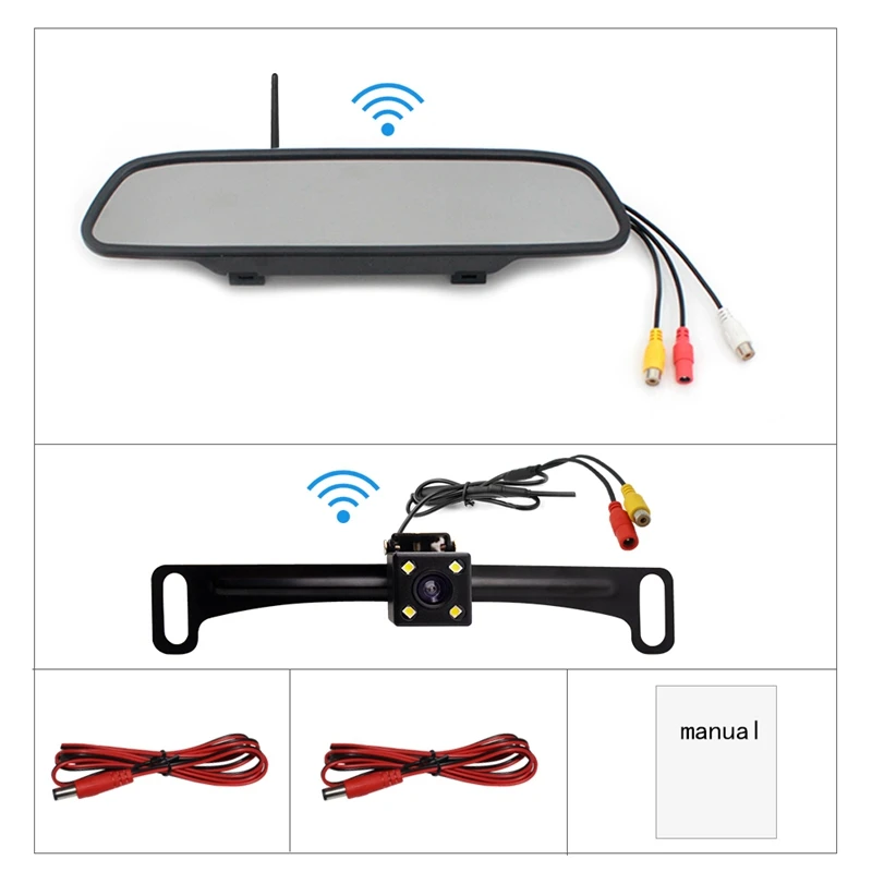 4,3 дюймов HD 800X480 автомобильный беспроводной Wifi видео плеер зеркало заднего вида с номерным знаком ночного видения камера заднего вида