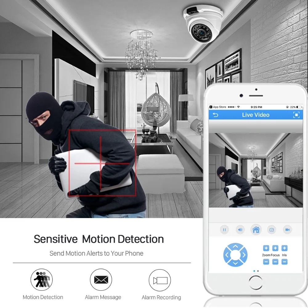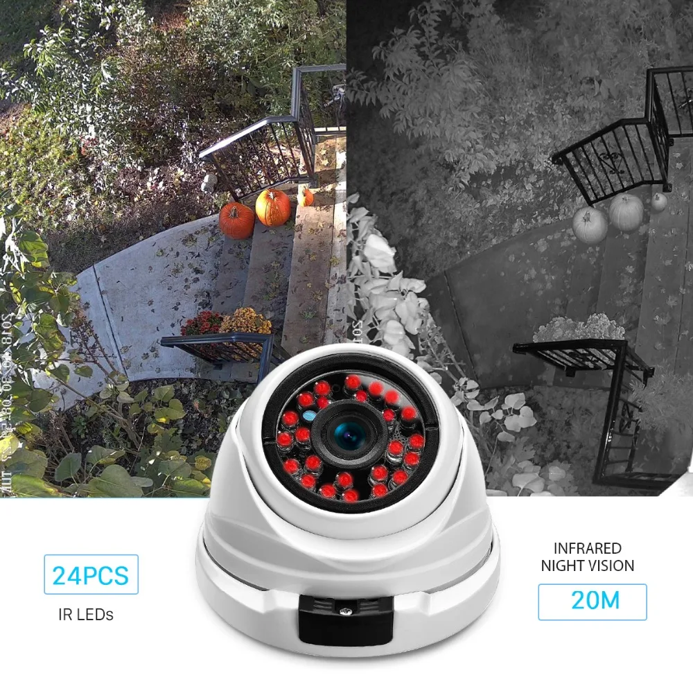 Супер HD 3MP 2MP опционально Технология сжатия видео H.265 Ночное видение до 20 м/65 футов Поддержка POE, значительно упрощает установку IP66 купол металлический корпус для наружного использования в помещении Обнаружение движения, запись и оповещения по электронной почте Удаленный просмотр с помощью IE browser или приложения XMEye Поддержка ONVIF, Совместимость с Blue Iris, iSPY, VLC, Onvif Device Manager и т. д.
