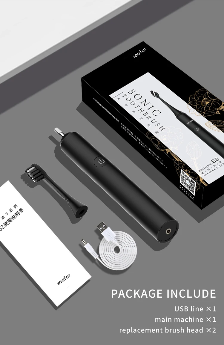 ● Удаляет до 7x больше зубного налета по сравнению с ручной зубной щеткой ● Высокая частота очистки: макс. 40000 раз/мин ● Помощь научным привычкам чистки: умный таймер 30 s + 2mins, таймер в ручке пульсирует каждые 30 секунд, чтобы сообщить вам, когда переключать области рта, 2 минуты напоминания о конце чистки для развития привычки чистки, рекомендованной стоматологом (один из них предлагает лучший период чистки) ● Высококачественные щетинки высокой плотности: антибактериальные и долговечные, глубоко погружаются в зубы мудрости, прорези десен и быстро очищаются зубные Бляшки ● IPX7 полный корпус водонепроницаемый уровень для прямой стирки ● Примерно 30 дней (два раза в день, 2 минуты каждый раз), поэтому никогда не беспокойтесь о зарядном устройстве во время путешествия ● Высокоэффективный режим очистки: отбеливать, чистить, принимать, полировать, массировать ● Информация об аккумуляторе: быстрая зарядка в течение 2 часов ● посылка включает: USB lineX1, главный механизм 1, сменную головку щетки