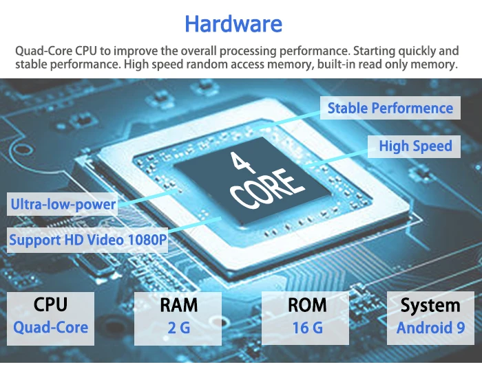 * Высокая мощность стерео аудио выход, поддерживает 4 динамика.
