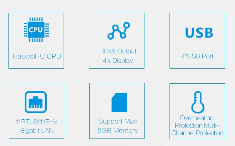 Порт ввода/вывода | Порты и разъёмы | 1 * VGA,1 * HDMI,1 * LAN,4 * USB3.0/1 * MIC-OUT/линейный выход, 1 * кнопка переключения, 1 * индикатор жесткого диска, 1 * индикатор питания |