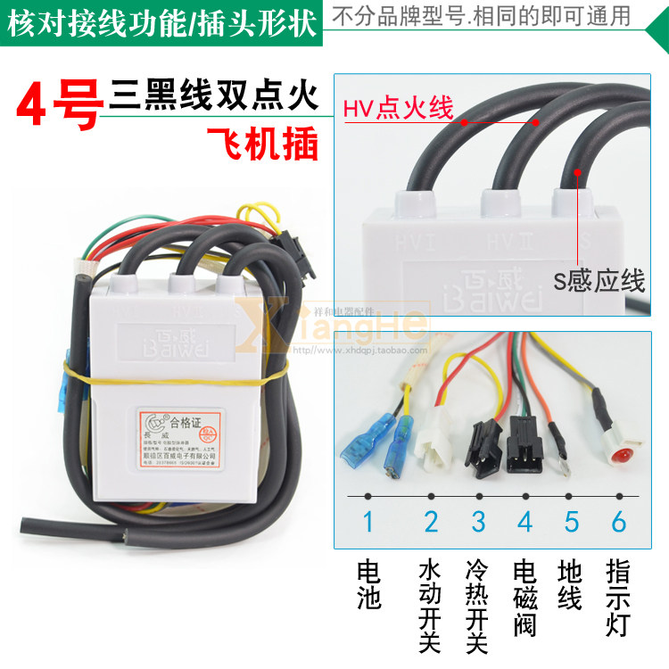 Модель 1: две черные линии и один разъем для самолета с зажиганием Модель 2: Два черных провода с одним зажиганием и двойным разъемом Модель 3: Тройная черная линия двойной разъем для самолета зажигания Модель 4: тройной черный провод с двойным зажиганием с горячей и холодной вилкой Модель 5: три черные линии и два зажигания с вилкой для отображения температуры