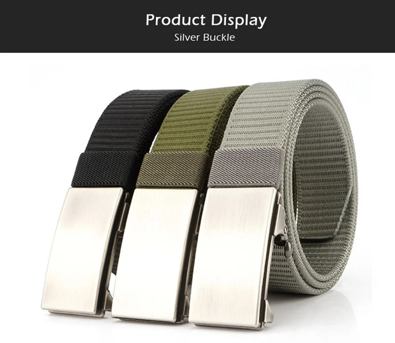 Информация о продукте Название продукта: Модный нейлоновый ремень с автоматической пряжкой Материал пряжки: металл Цвет пряжки: черный, серебристый Материал ремня: нейлон Цвет ремня: черный, армейский зеленый, коричневый, серый Ширина ремня: 3,5 см Длина ремня: 125 см Место происхождения: Гуанчжоу, Китай Совет: длину можно регулировать, не обрезать.