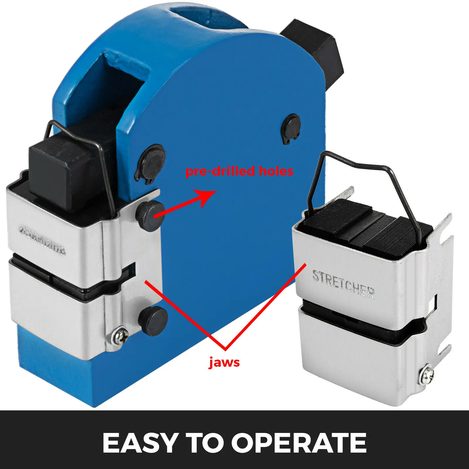 Простота в эксплуатации Ручная машина оснащена двумя закаленными губками, одна для усадки и одна для растяжения, легко заменяется при необходимости. Закаленные челюсти обеспечивают длительный срок службы и работу машин. Предварительно просверленные отверстия в основании для легкой установки.