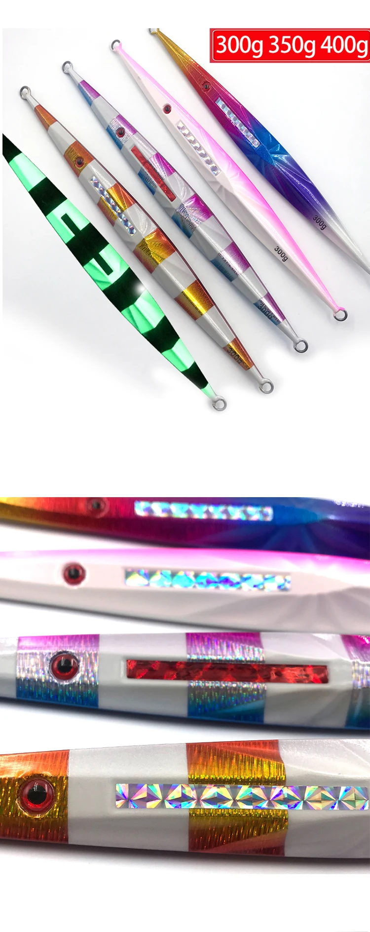 * Вес приманки: 300 г 350 г 400 г * Блесна, приманка, Длина: 300 г 25,5 см/350 гр 26 см/400 г 26,5 см/ * Блесна, приманка, Толщина: 300 г 2,1 см/350 г 2,2 см/400 г 2,3 см/ * Цвет: цвет, как показано на картинке * Время отправки: приблизительно 4-7 дней после получения оплаты * Крючок: соответственно: без Крючков * Материал: свинец * Посылка включает в себя: 1 джиг приманка в сумке