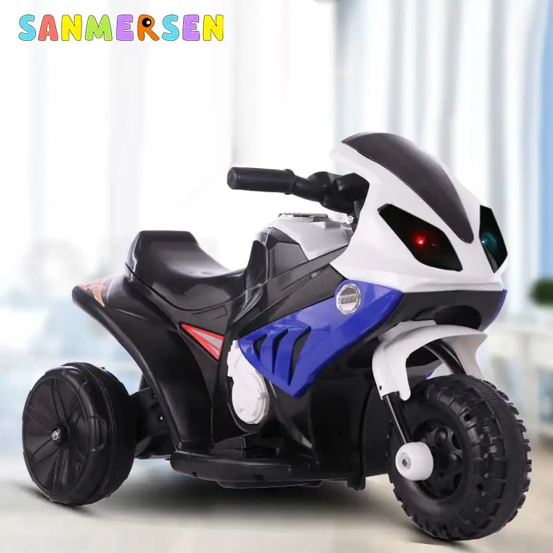 SANMERSEN Детский Электрический мотоцикл трехколесный велосипед внедорожный зарядный автомобиль с микрофоном музыкальное освещение ребенок три колеса ездить на автомобилях