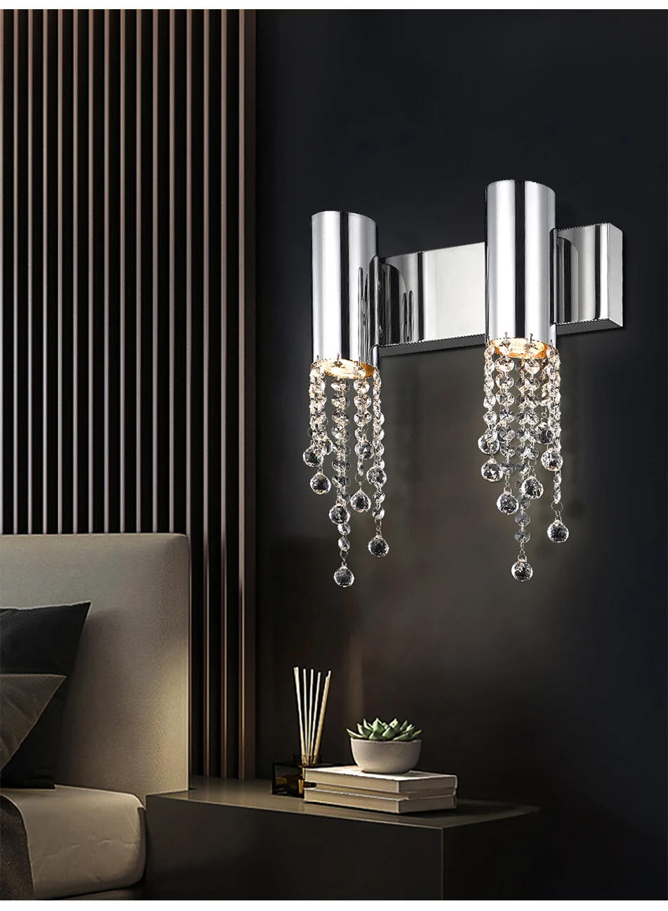 Современная лестница, настенный светильник, роскошная прикроватная Хрустальная настенная лампа, хромированный/Золотой Настенный декор, светодиодный кристаллический светильник, светильники