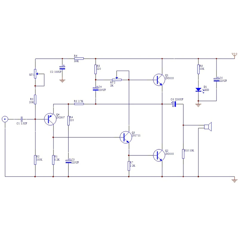 Средняя точка их собственной регулировки/метод quiescent тока: Настройте среднюю точку: Универсальный профиль напряжения, черная ручка, красная ручка, затем GND TP1 тестовые отверстия (TP1 на выходе конденсатора положительный) плата, регулируемое сопротивление KT1 это 1/2 от напряжения питания.