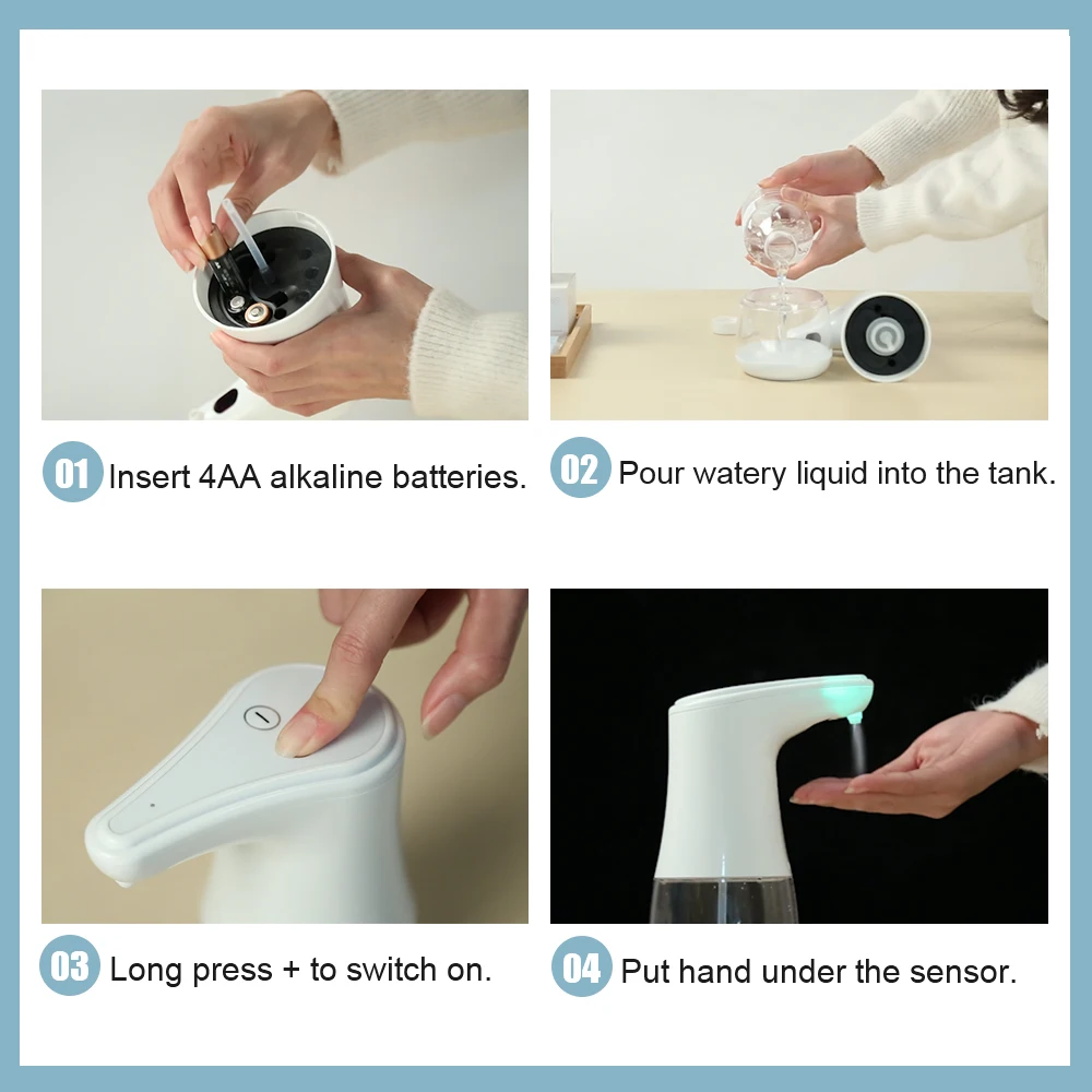 Водонепроницаемый и герметичный-разработан с водонепроницаемым уровнем IPX4, этот дозатор имеет силиконовое кольцо против утечки в резервуар для воды, И водонепроницаемое Силиконовое уплотнение для отсека батареи, чтобы предотвратить коррозию воды.