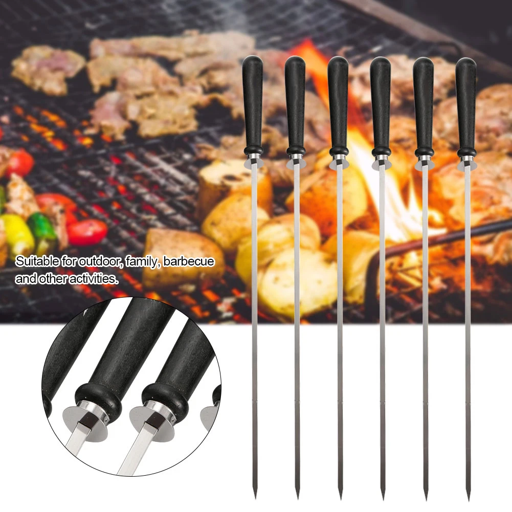 6 шт длинный толстый 52 см из нержавеющей стали с деревянной ручкой игла для барбекю мясная веревка для барбекю грили для шашлыка инструменты для шашлыка