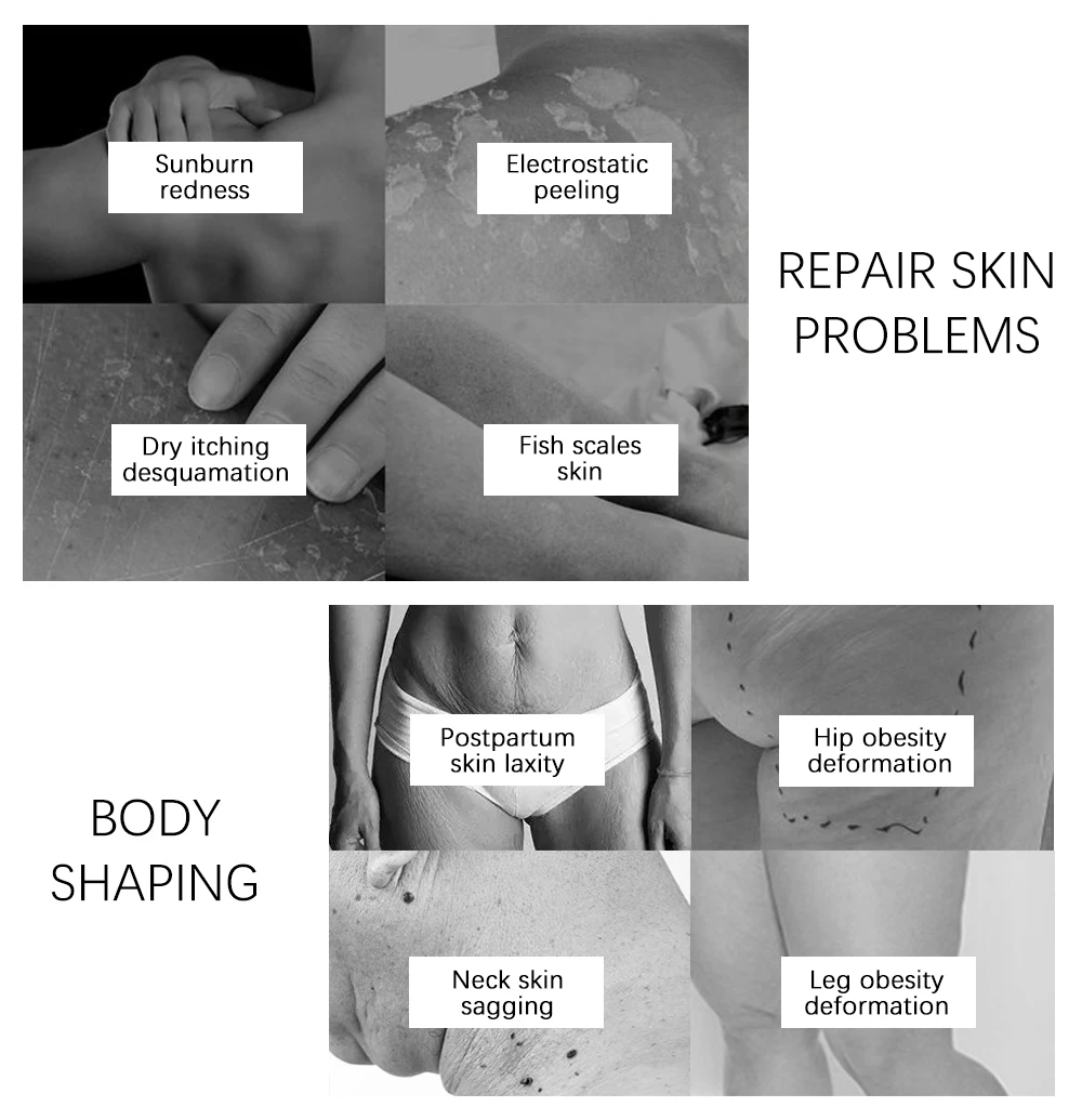 Ремонт проблем с кожей Солнечных ожогов покраснений Электростатический шелушения Сухой зуд шелушение В виде рыбьей чешуи; Кожи Эффект коррекции фигуры Послеродовой дряблость кожи В стиле «хип ожирение деформации Шеи дряблость кожи Ногу ожирение деформации