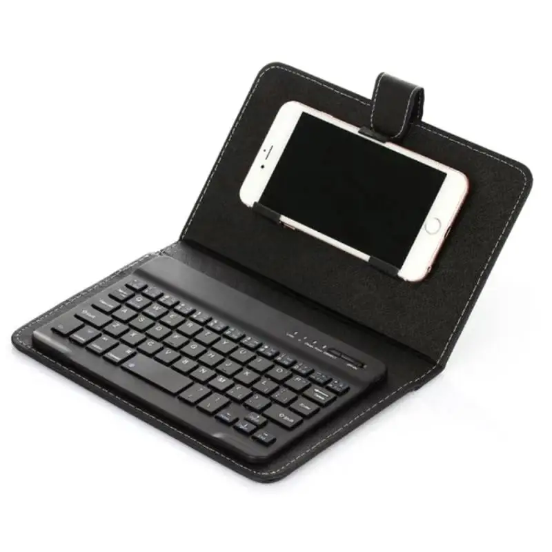 Клавиатура подключается к вашему мобильному телефону через bluetooth и может использоваться внутри чехол или раздельно, и клавиатура отстегивается.