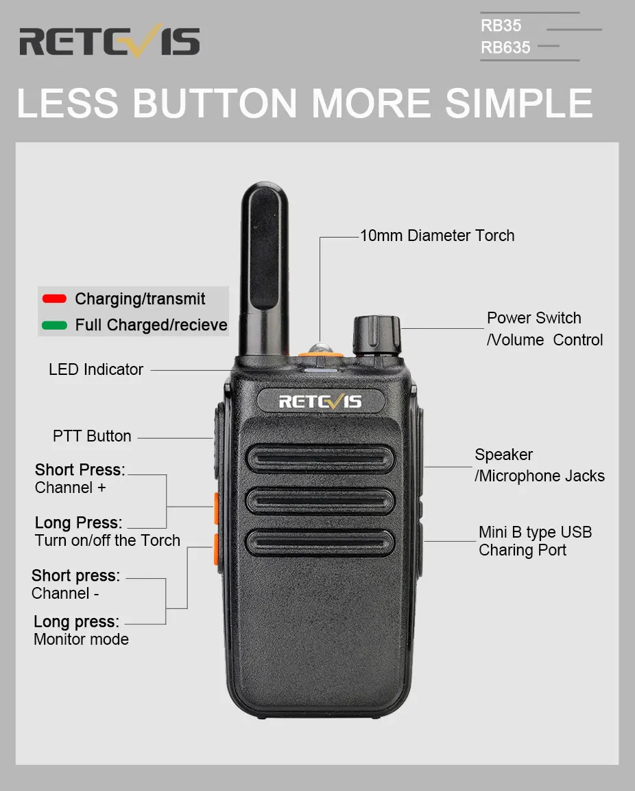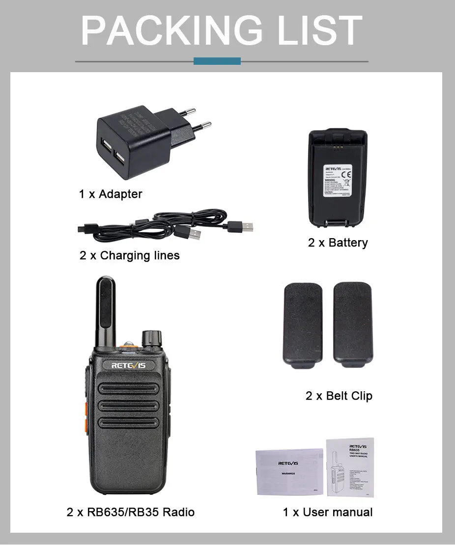 Диапазон разговоров зависит от многих факторов, таких как мощность RF, препятствия, погода, мощность аккумулятора и так далее. Как правило, RB35/RB635 может достигать от 0 до 1,5 км в городской местности, 0-2,5 км в деревне.