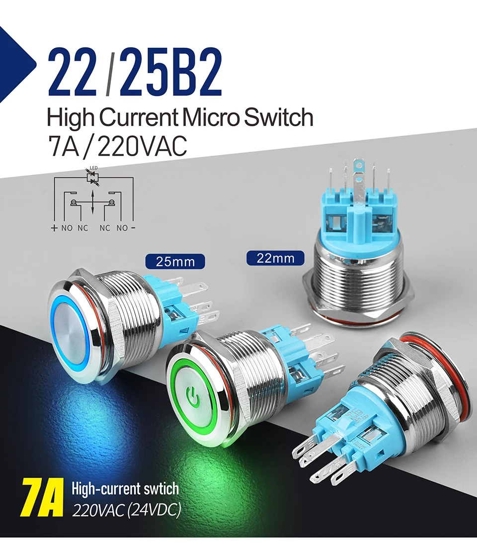 Металлический кнопочный переключатель серии WINDOO 22/25B2