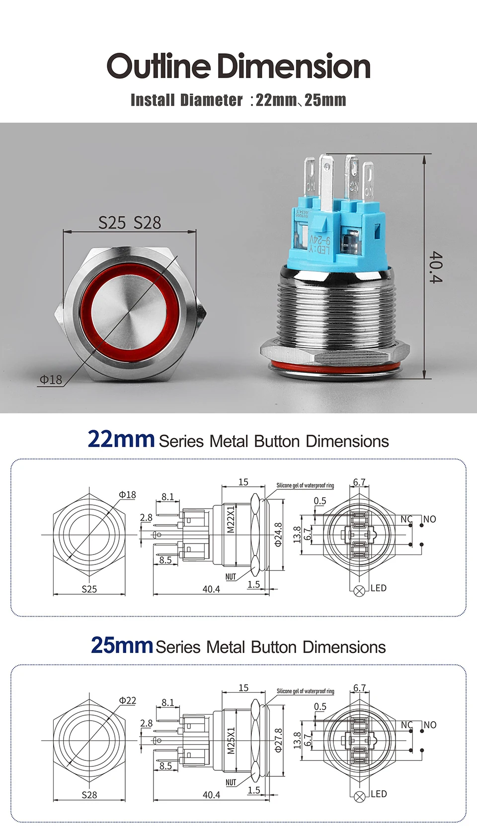 Номер модели | Металлический кнопочный переключатель WDN-22/25B2 |