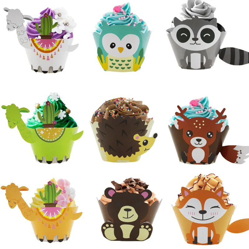 12 компл. День рождения Единорог динозавр Альпака праздничные обертки для кексов зоопарк Ферма Животных вверх торт вкладыши детский душ день рождения товары для вечеринок