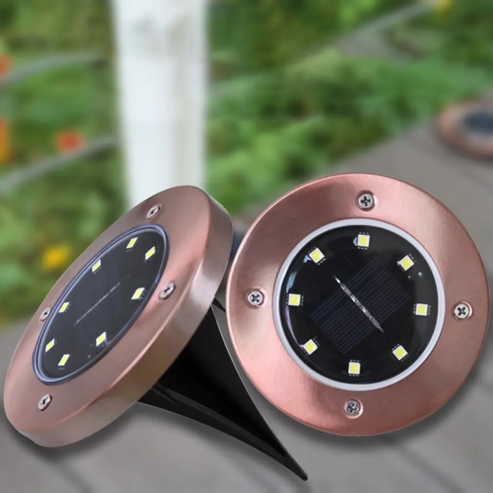 Особенности: 1. Долговечность: металлическая текстура, алюминиевый корпус лампы золотистого металла не боится износа, антикоррозии, длительного срока службы. 2. Удобный и безопасный: IP65 Водонепроницаемый, пластиковые вставки, простая и удобная установка, откройте переключатель, чтобы зафиксировать в один шаг, непосредственно похоронен в земле, стабильный и безопасный. 3. Текстура: Встроенный Силиконовый водонепроницаемый и пыленепроницаемый, высококачественный светодиодный светильник с абажуром из ПВХ, равномерный светильник и текстура. Описание: Он имеет широкий спектр применения в качестве декоративных огней, например, в спальнях, гостиных, барах, кафе, ресторанах, лужайках, двориках и т. д. Технические характеристики: Цвет: бронза Панель солнечной батареи: 2V100MA Емкость аккумулятора: 600 мАч Ni-MH Время зарядки: восемь часов на солнце Режим работы: светильник с датчиком управления, с основным переключателем Продолжительность освещения: 8-10 часов Количество лампочек: 8 Светильник Цвет: белый светильник Размеры: 12,6*11,5 см Уровень защиты: IP65 Тип источника: светодиодный светильник Номинальная мощность: 2 Вт Напряжение: 1,2 V Посылка включает в себя: 1 * бронзовая подземная лампа