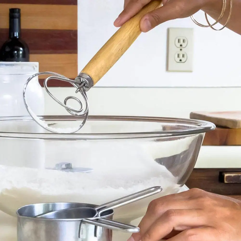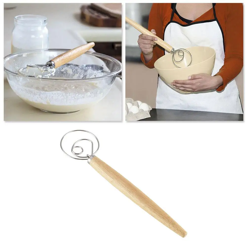 100% абсолютно новая деревянная ручка изготовлена из дуба и обработана 100% натуральным маслом. В 3 раза быстрее обычных ложек для смешивания. Изготовлено из высококачественной нержавеющей стали, поэтому не сгибается при приготовлении более плотного теста. Он очень подходит для различных продуктов, таких как свежеиспеченная пицца, сладкая пирожная корка, паста с аппетитным принтом, деликатная выпечка или кислое тесто и печенье. Этот баклажаны-это компактный ручной миксер, который отвечает всем требованиям выпечки!