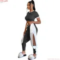 Комплект из двух предметов, Женский комплект для бега, с коротким рукавом, с круглым вырезом, с оборками, комплект со штанами, женский укороченный топ, лоскутные штаны USD 5,96-21,08Долларов США/шт