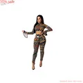 Модный женский комплект со штанами размера плюс, осень 2020, расклешенный укороченный топ с длинными рукавами и геометрическим принтом, длинные штаны, Женский комплект из двух предметов USD 6,52-23,16Долларов США/шт
