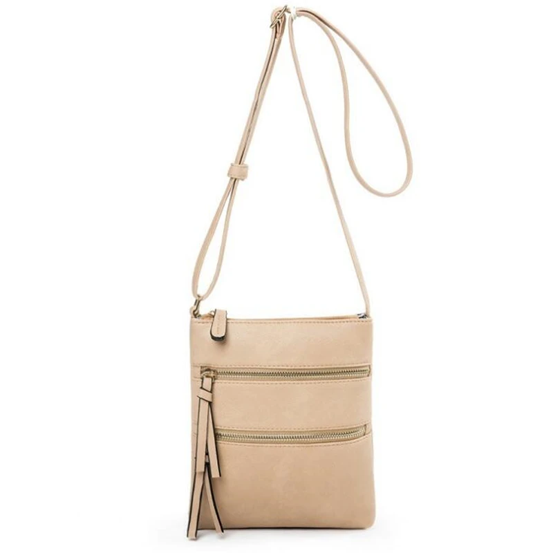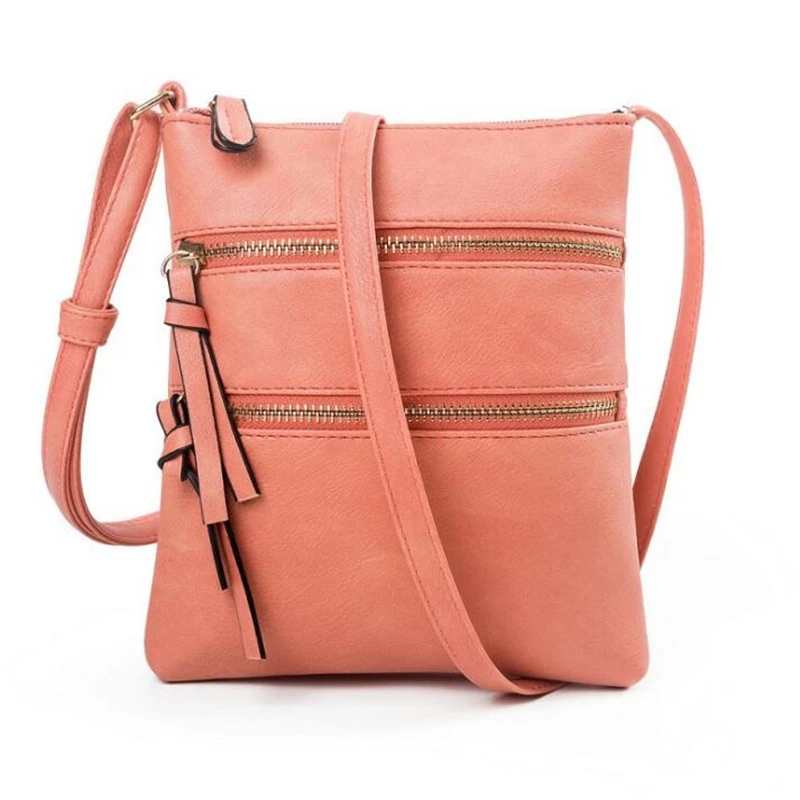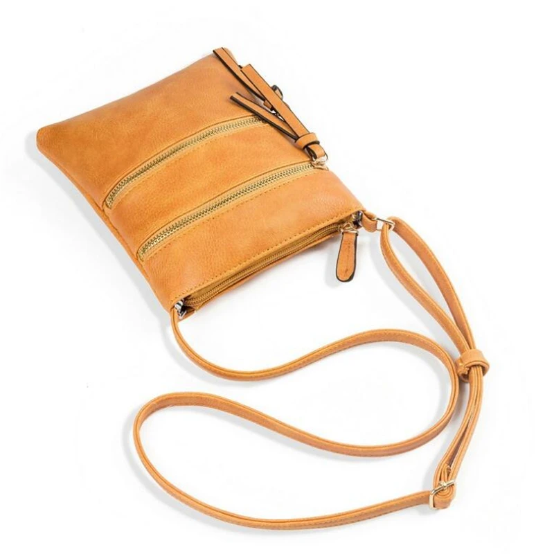 Повседневные однотонные женские сумки-мессенджеры на плечо, двойная молния, маленький кошелек для телефона, летние простые сумки через плечо