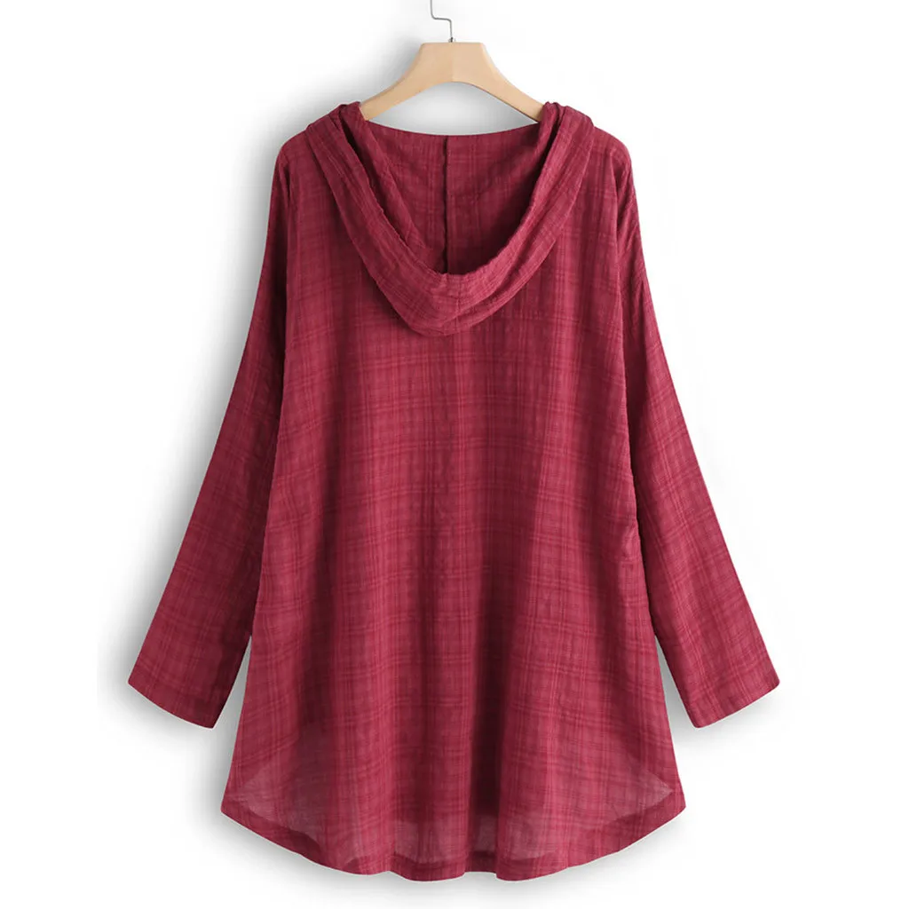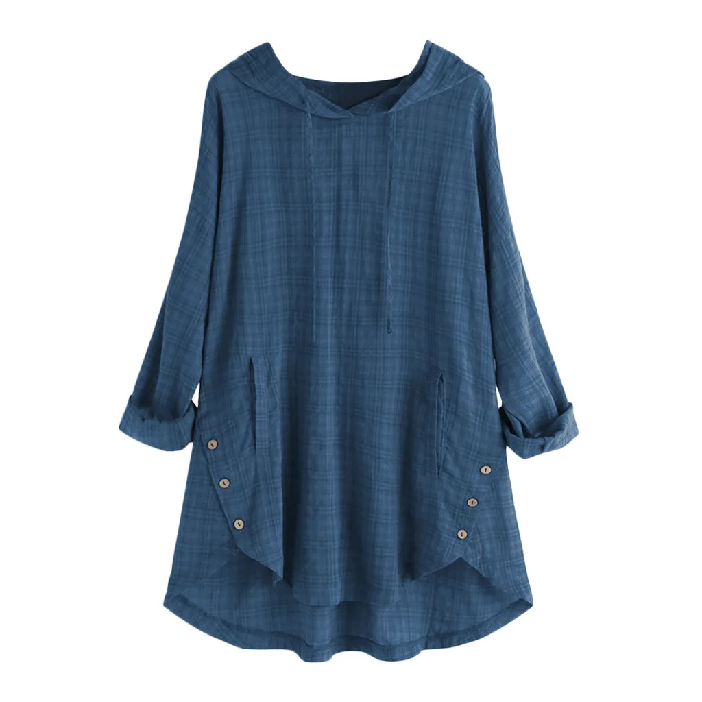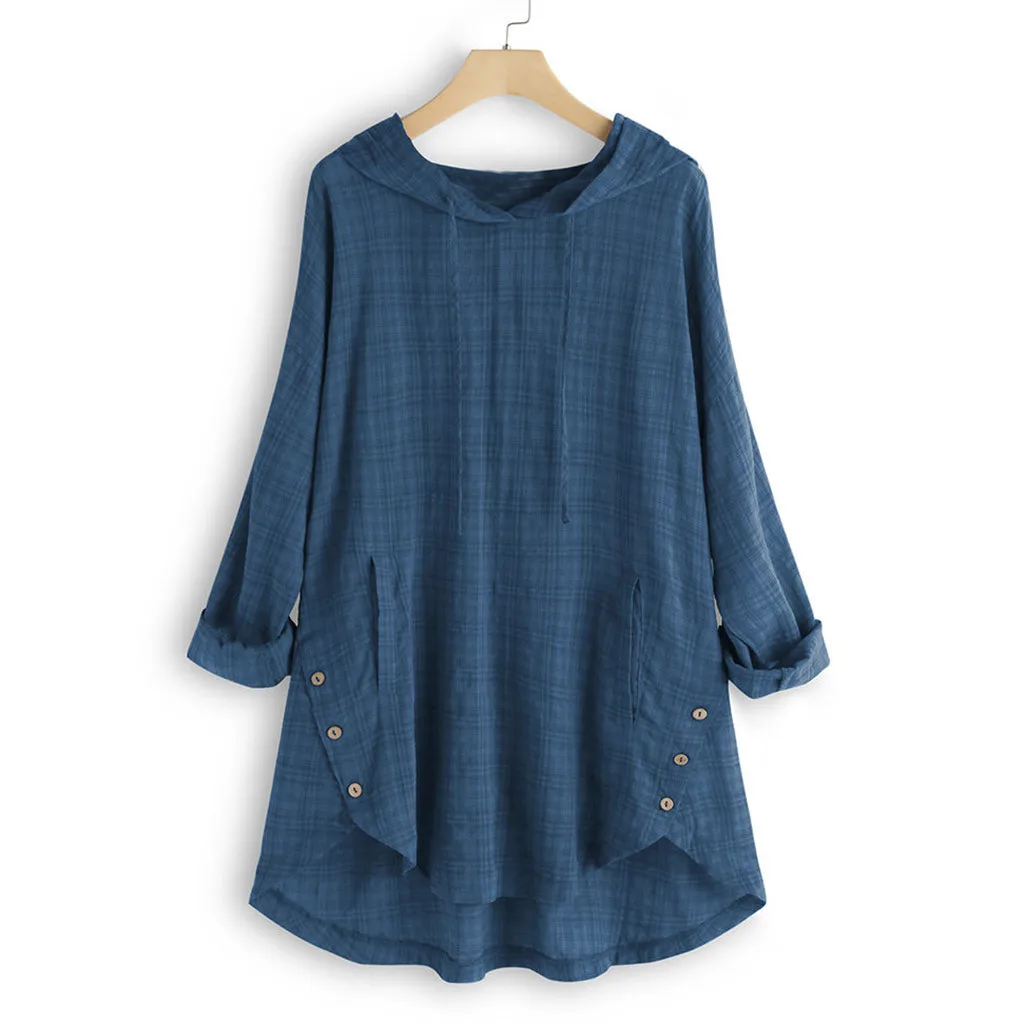 Летняя женская блузка размера плюс, Новая Летняя Повседневная Туника с капюшоном и длинным рукавом, мешковатая хлопковая и льняная Повседневная Туника