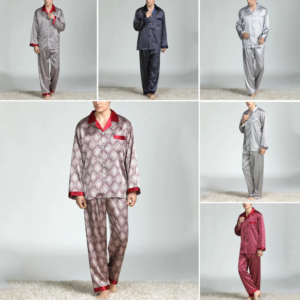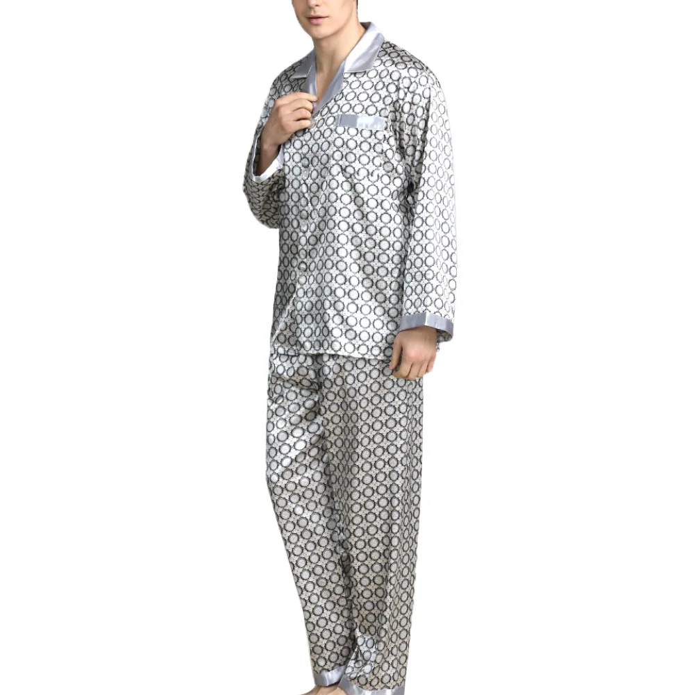 Мужской летний имитационный шелк пижама с принтом длинные штаны ночная