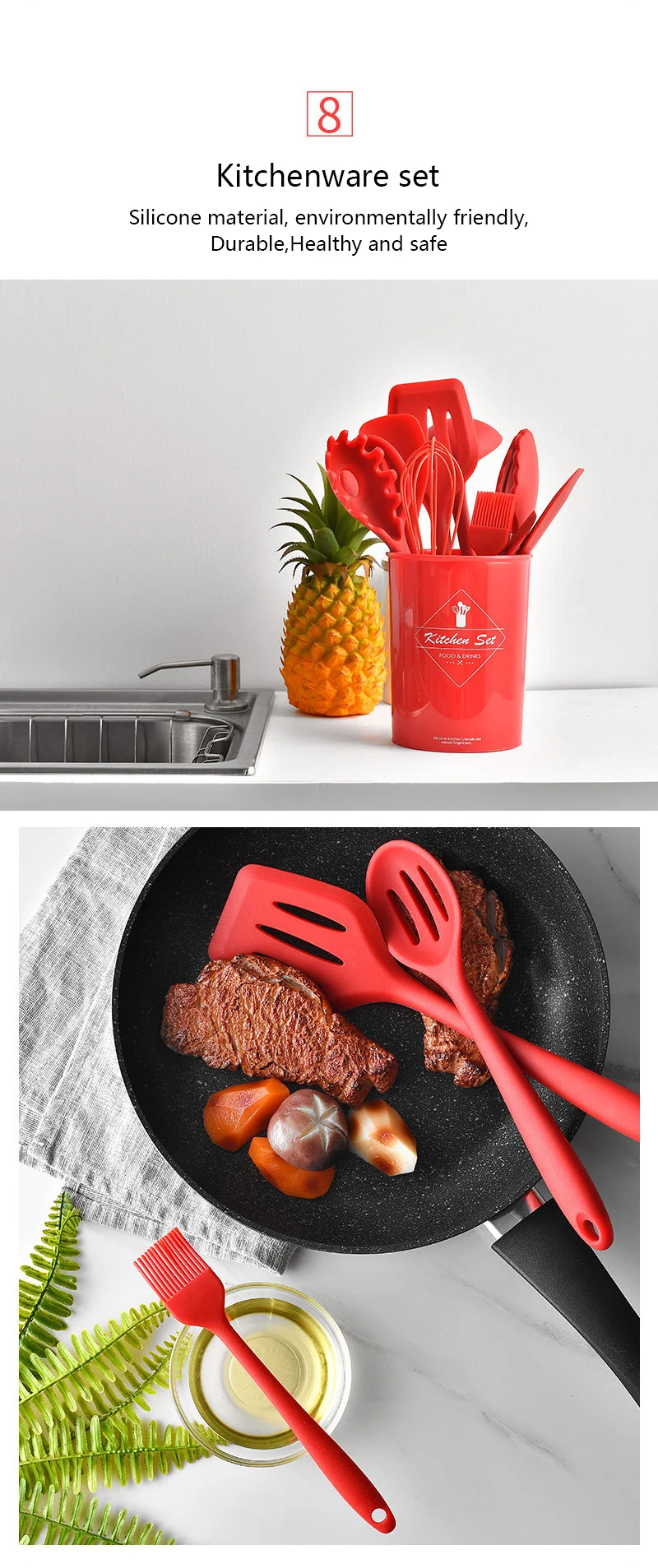 10 Pcs Heat Resistant Silicone Cookware Set Nonstick Cooking Tools Kitchen Baking Tool Kit Utensils Kitchen Accessories