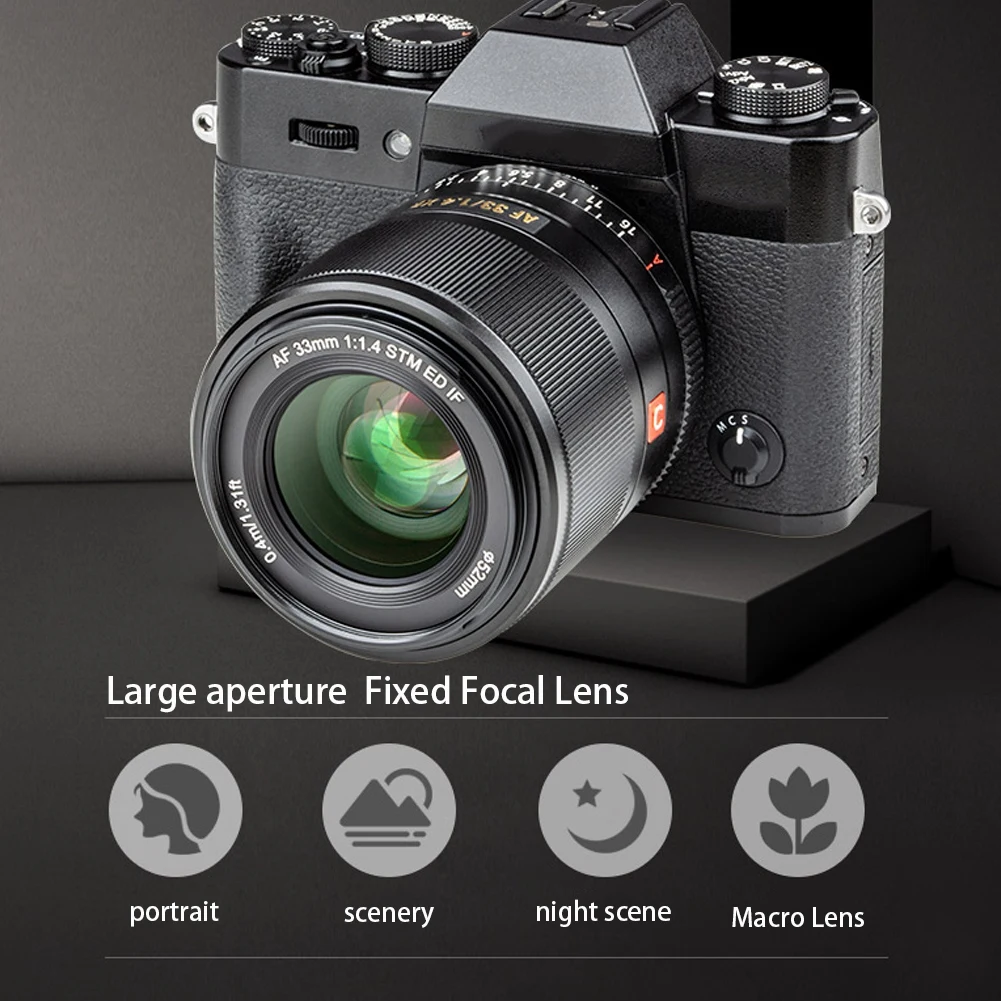 1. Фокусное расстояние 33 мм, Большая диафрагма F1.4. Легкий и маленький размер, обеспечивает удобство и гибкость для портретов, еды, пейзажей и ночных сцен.