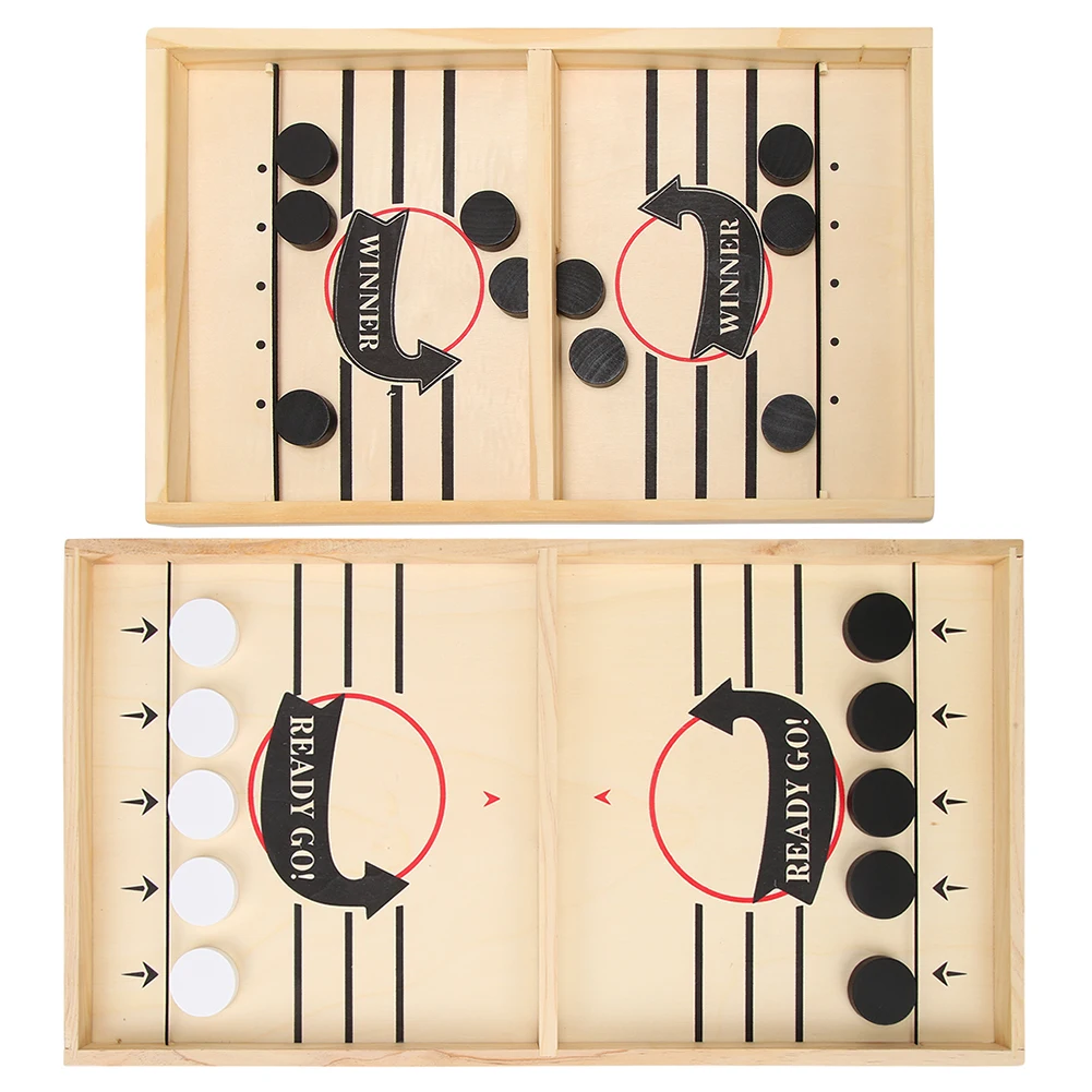 Характеристика: -Захватывающая шайба настольная битва: Получайте захватывающее удовольствие дома и с семьей -Стимулирует реакцию детей: волнение стимулирует ребенка быстрее и точнее реагировать на слинг -Тренировка по координации рук и глаз: Узнайте, как контролировать пучки и нацеливать направление, а также получите способность наклонять -Легко узнать, как играть: привяжите все шайбы к противоположной области игрока и выиграйте! -Отличная детская игра: пусть дети хорошо ладят с другими во время игры в настольные игры, а также веселятся с семьей Спецификация: Цвет: дерево Материал: дерево Аксессуары: 10 шт. Размер: 35x22x3.5 см/13,8x8,66x1,38 "(маленький) 56x31x3.8 см/22,0x12,2x1,50 "(Д x Ш x В) (большой) 42x42x2 5 мм/1,65x1,65x0,98 "(шайба) Количество игроков: 2 Подходящий возраст: 4 года и старше Инструкции по использованию: 1. Игра 2 игрока 2. Начните игру и разместите пять шайб на каждой стороне доски. Вставьте оба конца эластичной ленты в боковые пазы, чтобы они встали на место. 3. Проигрыватель использует эластичную ленту для запуска шайбы от двери до тех пор, пока рядом с ней нет шайбы. Игрок не поворачивается, они просто заправляются и снимаются как можно быстрее. Тот, кто очистит доску, первым выиграет. Примечание: 1. Возможны незначительные отклонения в размере из-за ручного измерения, различных методов измерения и инструментов. 2. Изображение может не отражать фактический цвет изделия из-за различных фотографирования светильник, угол и дисплей монитора. 10 х шайб