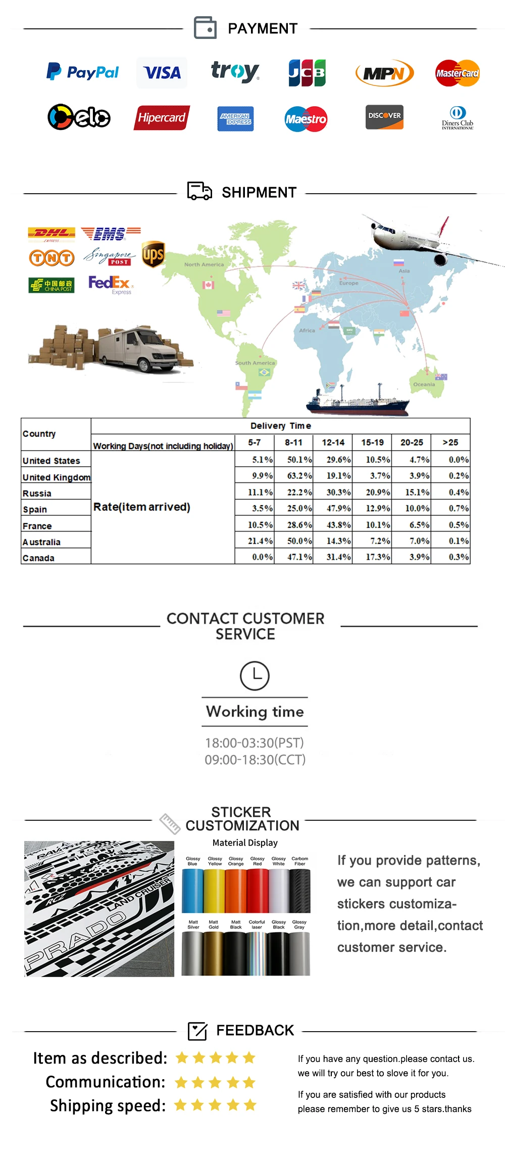 2.if you Provide patterns, we can support car stickers customization