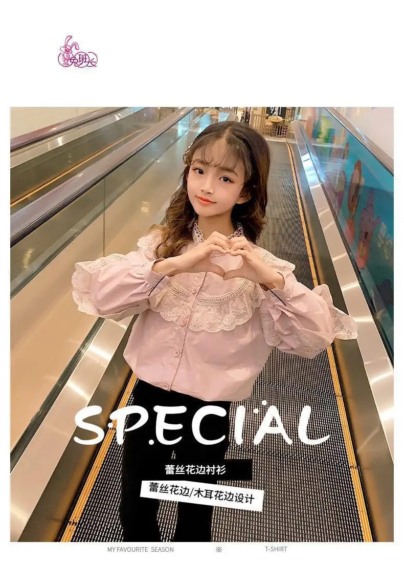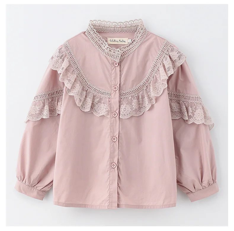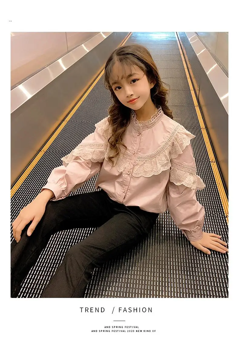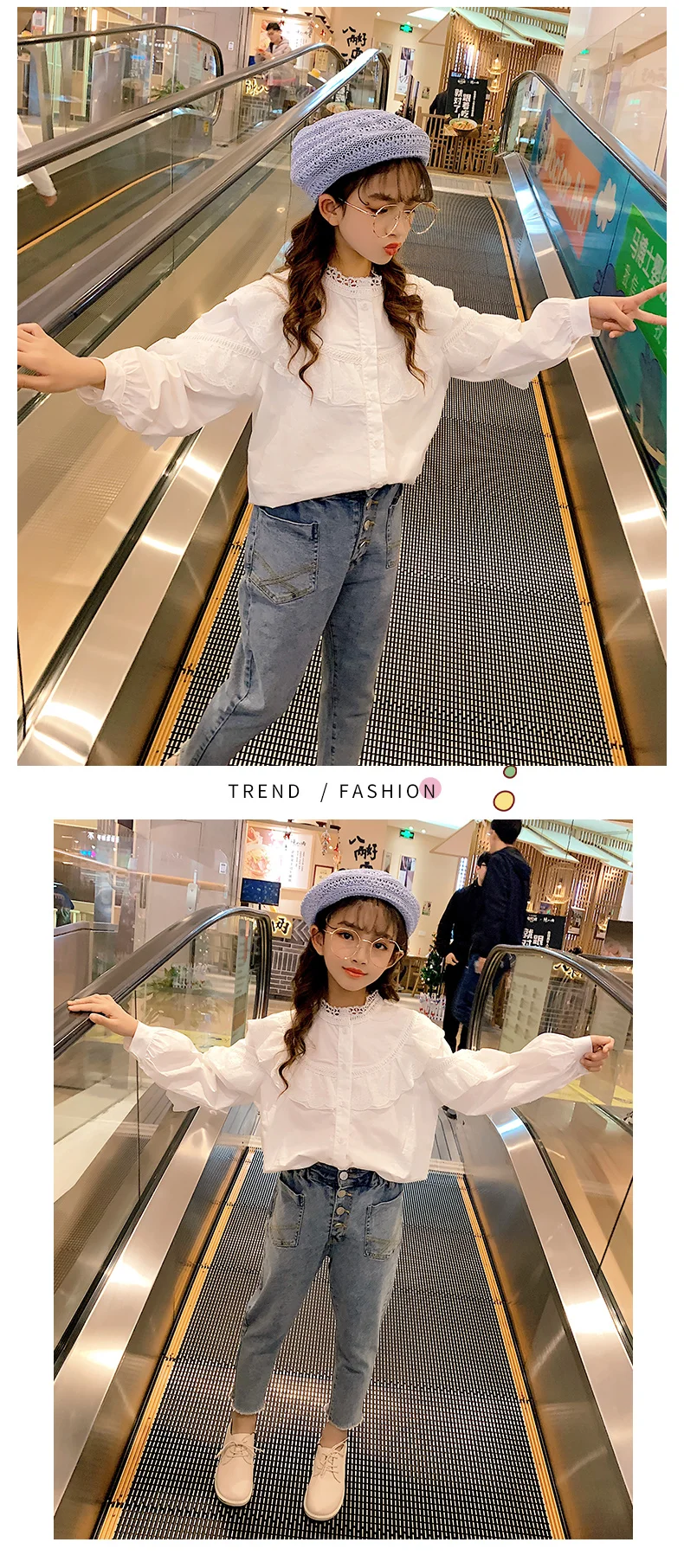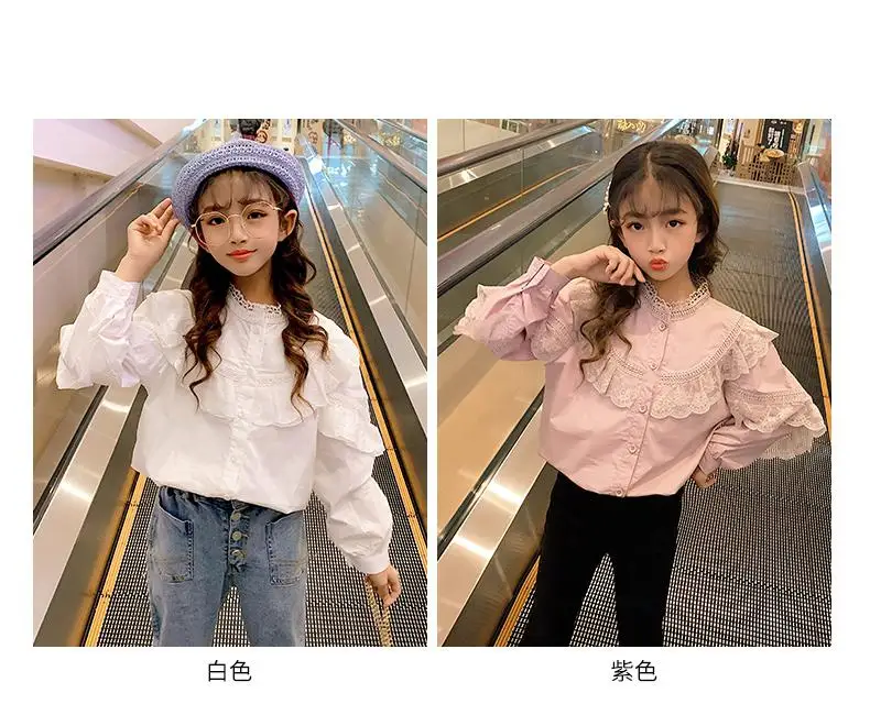 Белая кружевная блузка с длинным рукавом для девочек школьная рубашка детей