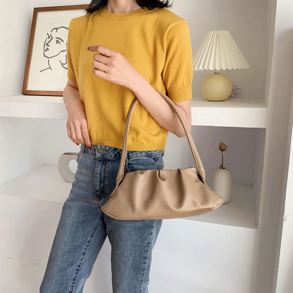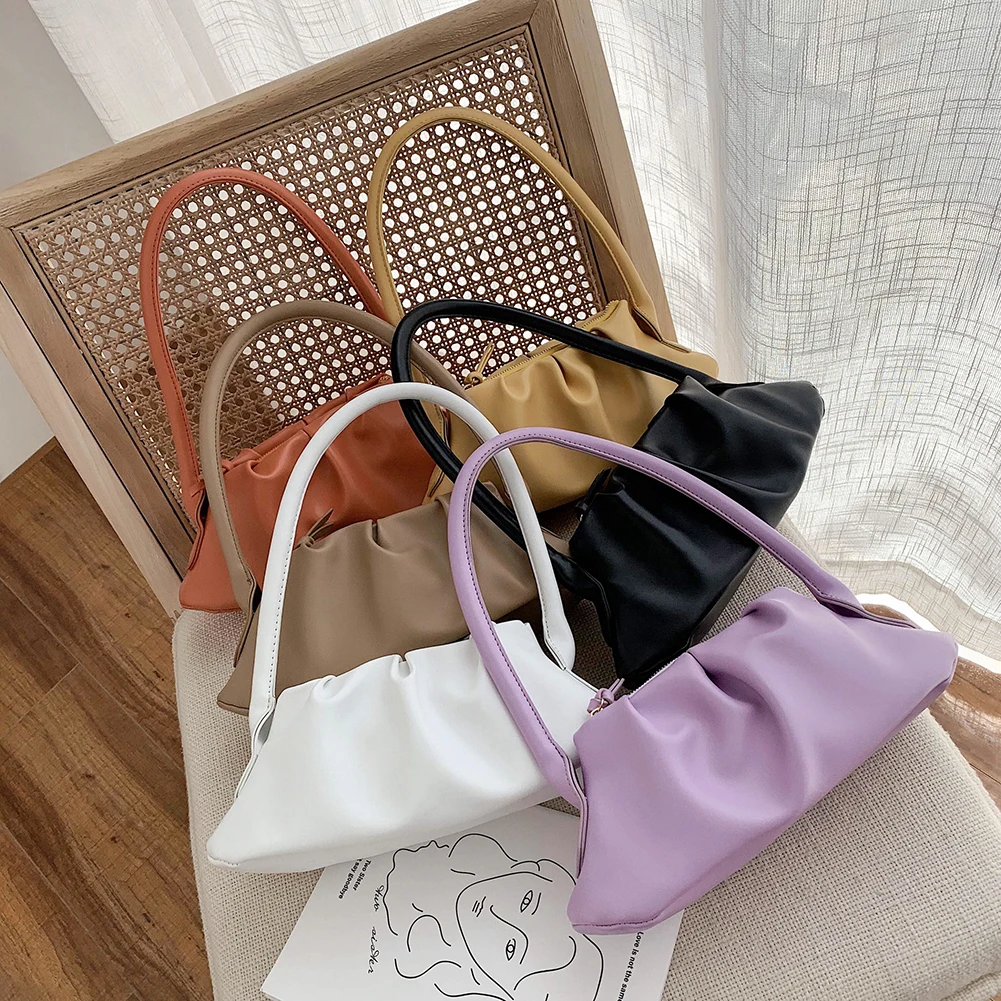 Модные плиссированные Женские Сумки из искусственной кожи, элегантные женские сумки-тоут для грузовиков, Женские однотонные вечерние сумки на плечо для путешествий, сумочка-клатч