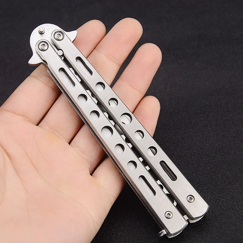 Характеристики: нож из нержавеющей стали, тренировочный нож с бабочками, нож для соревнований на открытом воздухе, тупой инструмент без лезвия