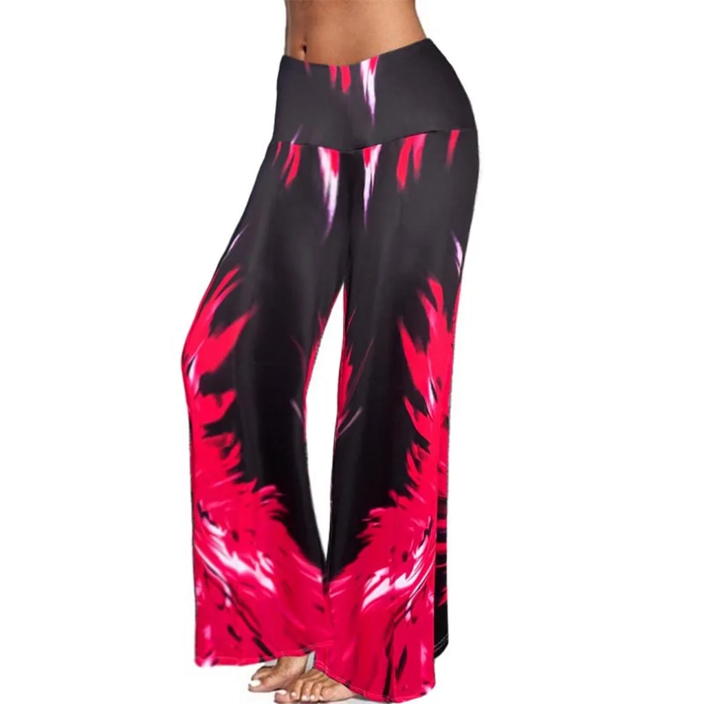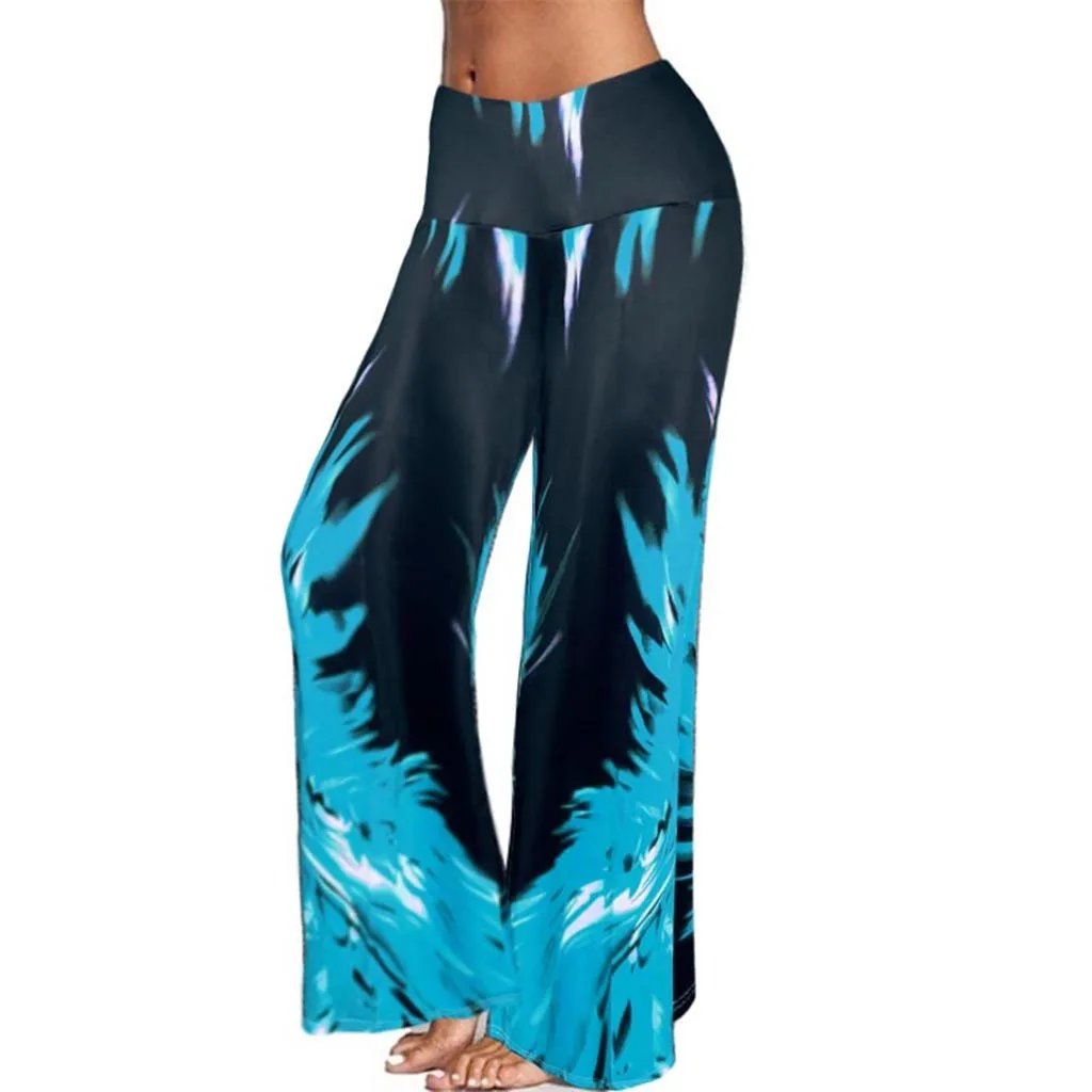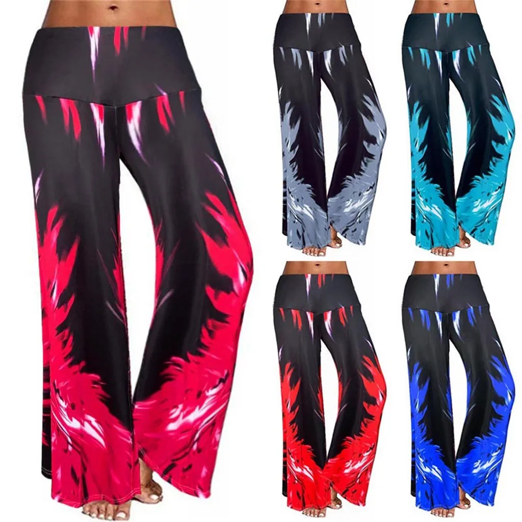 Женские расклешенные брюки со средней талией, широкие брюки для йоги, длинные брюки с галстуком-краской