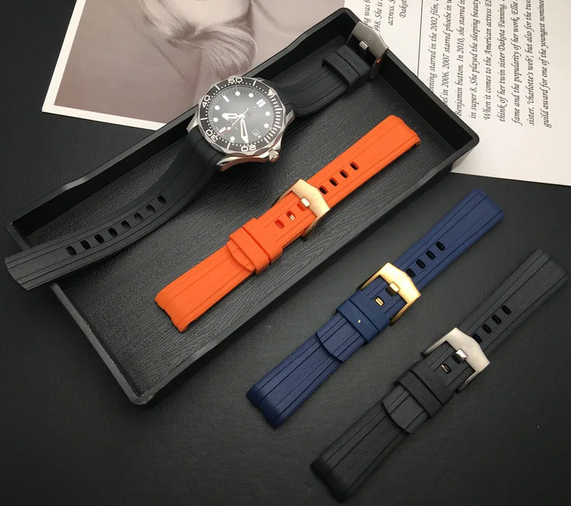 Высокое качество 20 мм мягкий фторкаучуковый силиконовый ремешок для часов ремешок с пряжкой мелкий песочный ремень специально для Omega ремешок для Seamaster 300