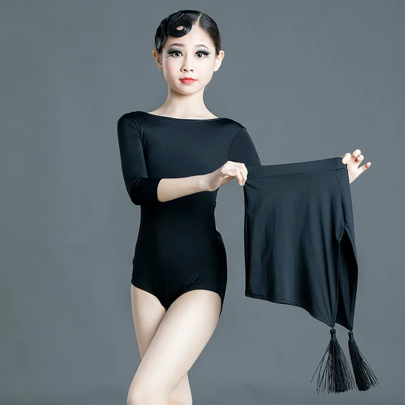 Женский костюм для латиноамериканских танцев, костюм для соревнований по бальным танцам, детская черная Одежда для танцев сальсы, танго, современная одежда для латиноамериканских тренировок, танцевальное платье ча-ча