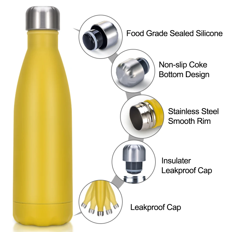 Эта Вакуумная бутылка с 5 стенками, изготовленная из нержавеющей стали премиум-класса 18/8 и с порошковым покрытием и прочной матовой отделкой. Внешняя часть Герметичной Вакуумной зоны погружена в медь для дополнительной изоляции. Медь уменьшает перенос температуры, добавляя еще больше изоляции в вашу бутылку. Силиконовая Резина без БФА на каждой крышке обеспечивает не протекание, даже если бутылка надавливается или трясется. И вы можете поместить нашу вакуумную чашку в свой пакет, не беспокоясь о смачивании других предметов. Бутылка, покрытая высококачественным порошком снаружи, противоскользящая и устойчивая к царапинам, а также предотвращает образование конденсата на внешней стенке.