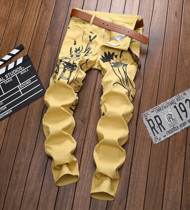1.Item Type: Mens Straight Printed Jeans 2.Material:Cotton, Spandex 3.Style: Middle Waist 4.Suitable for: Youth/Men 5.Occasion: Casual daily wear/matched with t shirt, shirt, jacket 6.Accept Drop Shipping, the package does not include any price or invoice 7.Belt is not included